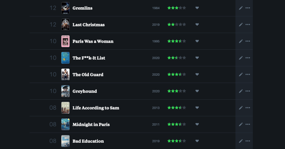 So that was last month…a little bit of this…little bit of that. Some laughs, some tears, some introspection. And per the usual, I used Letterboxd (follow me over there if you’d like) to keep track of what I watched. Oh, and just a FYI — going forward, there will be many more French films (I’m taking a more serious approach to my language learning and trying to immerse myself in French podcasts, movies, music, etc.) and works by underrepresented artists and voices so be prepared to broaden your horizons LOL!