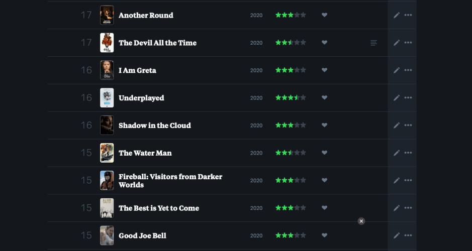 “Another Round” grew on me and was an enjoyable watch in the end (its more than what it seems on the surface)…when I tell you the accents in “The Devil All the Time” took me all the way out…“Underplayed” was a cool doc about the unsung stories of female DJs…“Shadow in the Cloud” was insane, genre fun…definitely could have done without “Good Joe Bell” and Mark Wahlberg‘s redemption film…