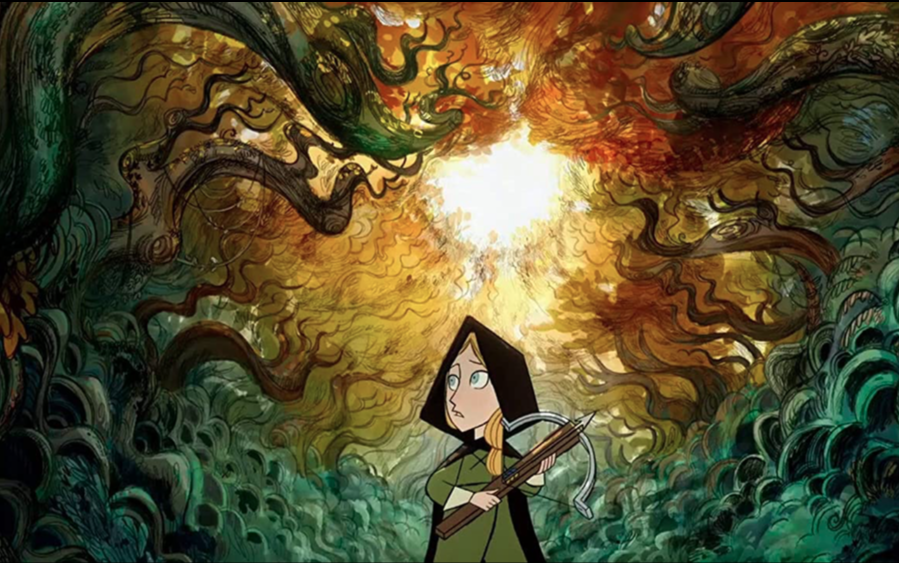 One day, Robyn ventures off following her father on a hunt (against his wishes and the rules of the city where no children are allowed outside the walls). She so wants to be just like her single-father whose only goals is to protect his daughter as he tries to do what he thinks is best for her. While out wandering the woods she stumbles across an unlikely friendship with Mebh (voiced by Eva Whittaker), a young wolfwalker, and they embark on a quest to save Mebh’s missing mother.